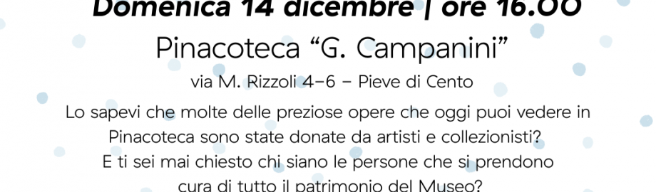 Lo sapevi che molte delle preziose opere che oggi puoi vedere in Pinacoteca sono state donate da artisti e collezionisti? E ti sei mai chiesto chi siano le persone che si prendono cura di tutto il patrimonio del Museo? Una visita animata alla Pinacoteca permette di riflettere sul tema delle donazioni, sulla parola dono e sul senso del donare una propria collezione alla città.