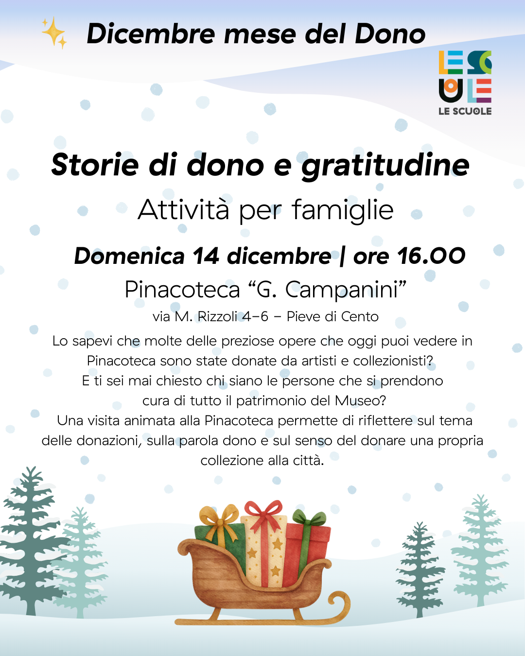 Domenica 14 dicembre alle ore 16.00 vi aspettiamo per attività per famiglie “Storie di dono e gratitudine”.
