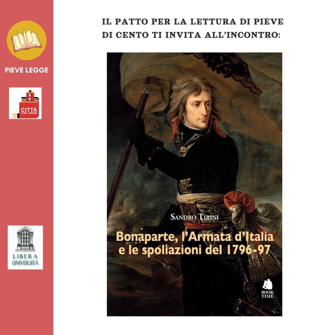 Martedì 24 marzo alle 15.30 nell’auditorium delle Scuole il Patto per la lettura di Pieve di Cento vi invita alla presentazione del libro Bonaparte, l'Armata d'Italia e le spoliazioni del 1796-97 di Sandro Tirini (BookTime, 2025).